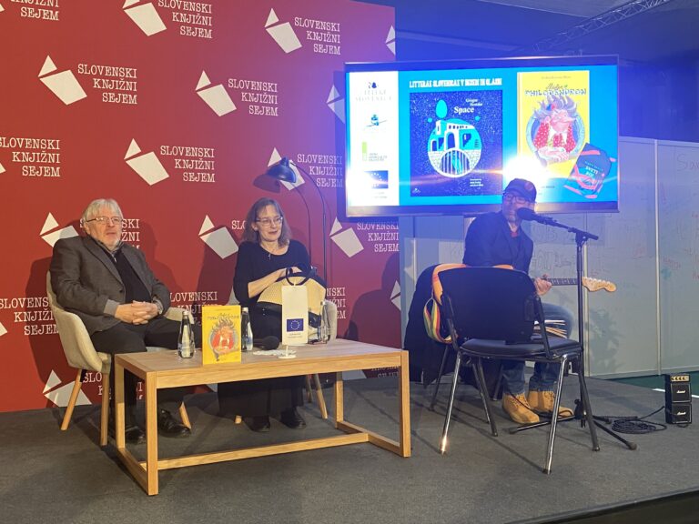Novica Der heilige Kampf on our annual book fair, Nov. 2024 November 30, 2024 / Vlado Žabot and Nada Grošelj with editor Matej Krajnc on Slovene Book Fair 2024, 30th Nov. The fore-event for Die heilige Kampf book. Photo: DSP